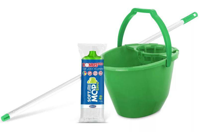 HACCP SoftMOP Extra szett egy praktikus felmosórendszer, amelyben a hatékonyság és a kényelem találkozik. A 100%-ban újrahasznosított, viszkóz és poliészter keverékből készült felmosófej extra nedvszívó képessége garantálja a gyors és alapos tisztítást, még a durvább felületeken is. A szetthez tartozó csavarókosárral könnyedén kicsavarhatjuk a felmosófejet, így a kezünk száraz marad, a 120 cm-es nyél pedig lehetővé teszi a hátkímélő testtartást. A szett elemei könnyen szétszerelhetők, így a tárolása helytakarékos.