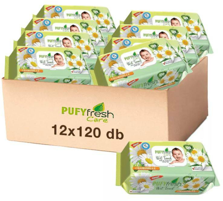 Pufy Fresh Care kupakos nedves törlőkendő kamilla kivonattal, ami enyhíti kisbabánk bőrét. Vastagabb, mint az átlagos törlőkendők, így nem szakad el használat közben. Ár-érték arányban kiváló, praktikus kupakos zárásának köszönhetően nem szárad ki. 12x120 db-os kiszerelés.