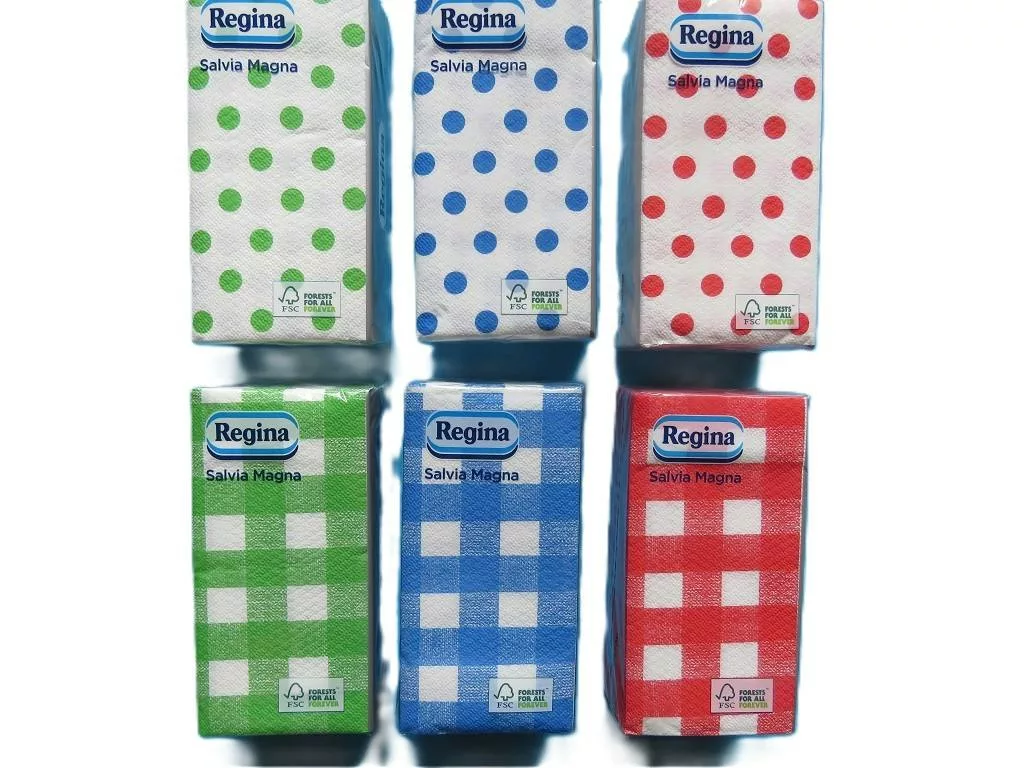 1 rétegű, 30 db-os 1/8 hajtogatott szalvéta több színben. A design véletlenszerűen kerül kiválasztásra.