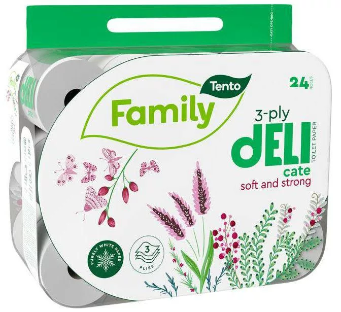 A Tento Family termékcsaládot azok számára ajánljuk, akik egyszerű, de jól használható higiéniai megoldásokat keresnek az otthonukba. Gazdaságos, 3 rétegű Tento toalettpapír (wc papír). Kiváló ár-érték arány!