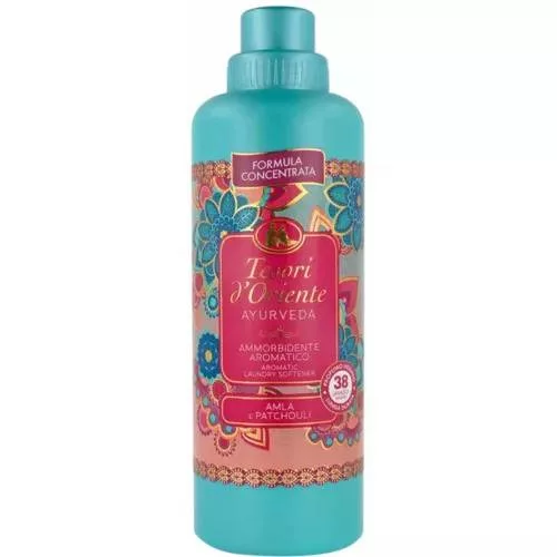 A Tesori d'Orient Ayurveda Amla Oil e Patchouli textilöblítő egy ayurvédikus illat, finom citrusos jegyekkel, finom mikrokapszulákkal gazdagítva, amelyek varázslatos illatot kölcsönöznek a ruháknak, amely a jólét és a harmónia érzését kelti.