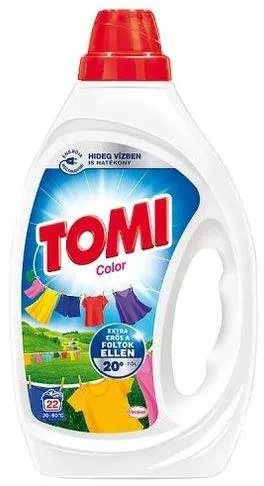 Tomi Color folyékony mosószer színes ruhákhoz. Erőteljes új formulájának köszönhetően a Tomi a legmakacsabb foltokat is eltávolítja. Hatékony minden mosási fokozaton, akár 20°C fokon is, energiát megtakarítva.