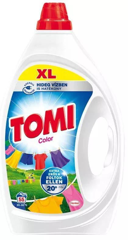 Tomi Color folyékony mosószer színes ruhákhoz. Erőteljes új formulájának köszönhetően a Tomi a legmakacsabb foltokat is eltávolítja. Hatékony minden mosási fokozaton, akár 20°C…