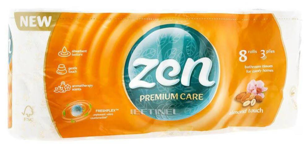 ZEN Wc papír Prémium Care Almond Touch 3rtg, 8tek, 145lap
