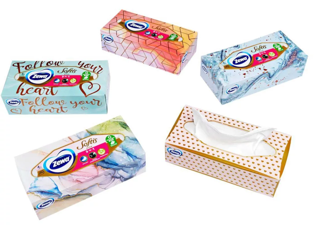 A Zewa Softis Style zsebkendők 4 rétegű, extra puha és erős, prémium papír zsebkendők dobozos kivitelben. A Zewa 3 az 1-ben papírzsebkendőkkel egyszerre törődhetsz magaddal, szeretteiddel és a környezettel is.