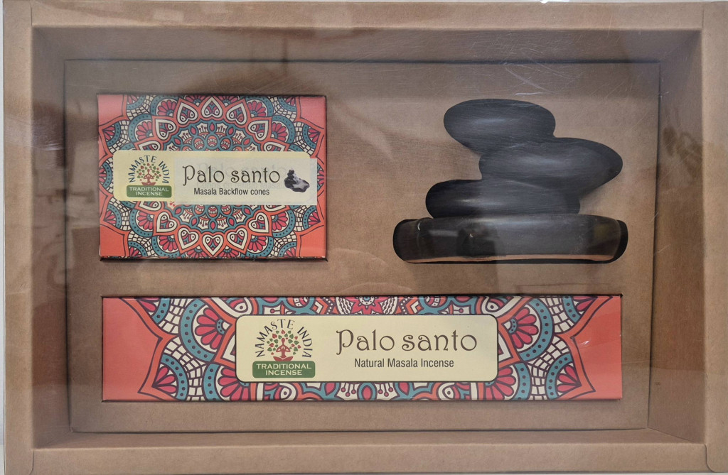 ZenHome Kerámia szett "Kő" - Füstölővel és kúpfüstölővel/Palo Santo