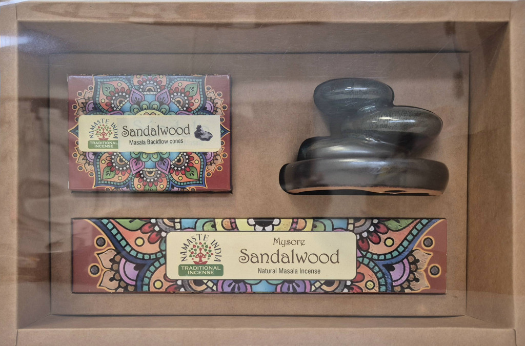 ZenHome Kerámia szett "Kő" - Füstölővel és kúpfüstölővel/Szantál